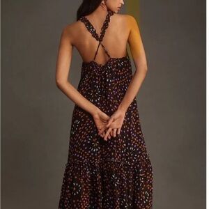 This beautiful Anthropologie dress is perfect for any occasion. The sleeveless chiffon fabric flows elegantly and the long maxi dress is comfortable and stylish. The black color adds a touch of sophistication.