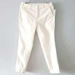 Elevate your wardrobe with these Anthropologie chino pants in a chic ivory color. The ankle-zip hem adds a trendy touch to the classic design. Perfect for any occasion, these pants are a size 28 and have a comfortable elastic waistband. The pants are designed for women and are categorized under clothing, shoes, and accessories. The brand is Anthropologie and the style is a chino with features that include ankle zips. Don't miss out on this stylish piece for your wardrobe!