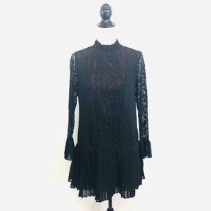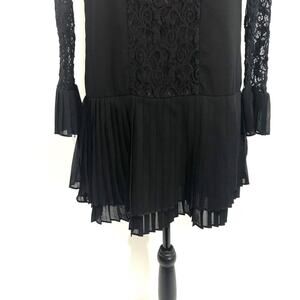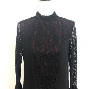 Anthropologie Black Lace Chole Oliver dress . Lace sleeves peasant style and has a Burgundy color lining. The material and size tag have been removed.