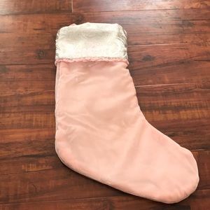 Selling a gently used Christmas stocking sock. Very cute for the holidays. Please see picture for minor wear. Has some pink on one side of the sock, on the silver part. Not too noticeable. The other side is perfect. Price reflects that.