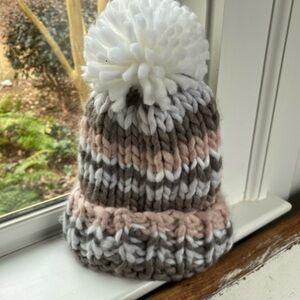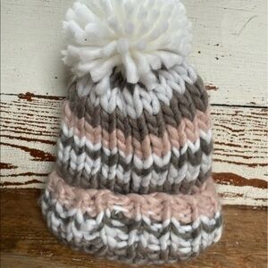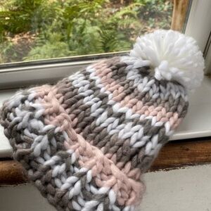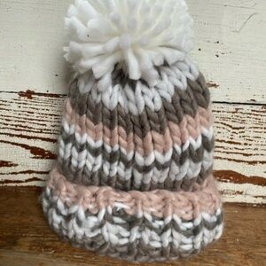 Anthropologie Chunky Striped Pom Beanie