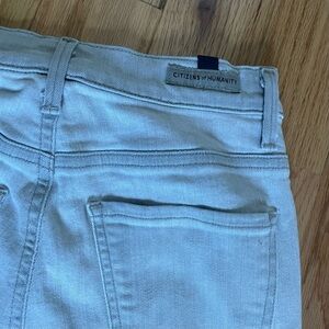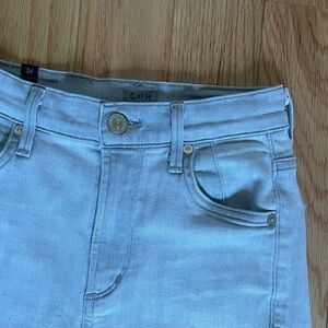 Pale gray skinny jeans from Citizens of Humanity by Anthropologie. These pants feature stretch denim fabric, high rise, cropped hem.