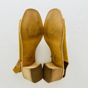 Anthropologie Clara Shootie Yellow Suede Block Heel Leather Sandal Euro 40 US 9