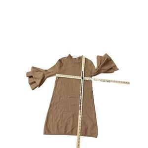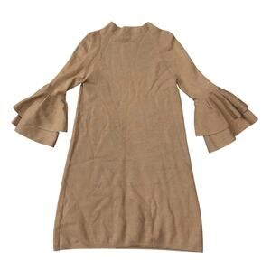 Anthropologie Claudette Metallic Ruffled Sleeved Mock Neck Gold Sweater Dress XS