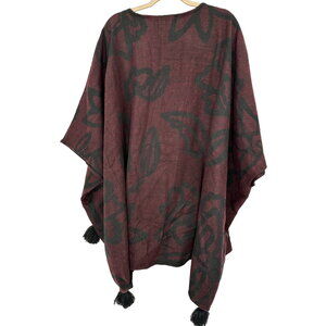 Anthropologie Cleobella Sevigny Capelet Poncho Cardigan Red Wine Black One Size