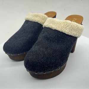 Anthropologie Clogs Miss Albright Wool Terrestrial Faux Shearling Platform Boho