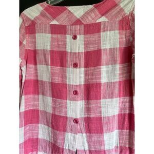 Anthropologie Cloth And Stone Linen Gingham button back Top In Pink Size S