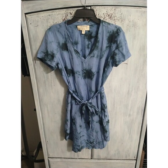 The Anthropologie Cloth And Stone Tie Dye V-neck Mini Dress in size S is a stylish and versatile piece perfect for various occasions like travel, weddings, parties, casual outings, work, and business meetings. Made from lyocell material, this blue dress features a V-neckline, short sleeves, and a pullover closure for easy wear. The tie-dye pattern adds a unique bohemian touch, making it suitable for all seasons, whether it's winter, summer, fall, or spring. With its mini length and Anthropologie branding, this dress embodies a beachy chic vibe that is sure to make a statement.