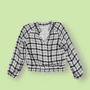 Anthropologie Cloth & Stone Black White Plaid Sarah Blouse Women's L