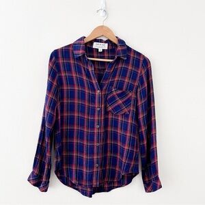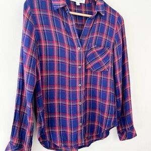 Anthropologie Cloth & Stone Blue Plaid Button-Up