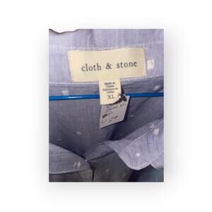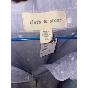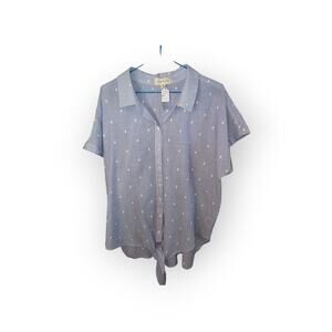Anthropologie Cloth & Stone Blue Polka Dot Button Down Tie Front Top Sz XL