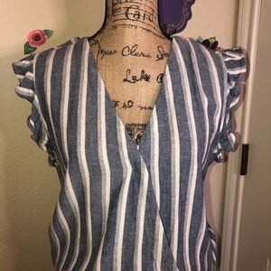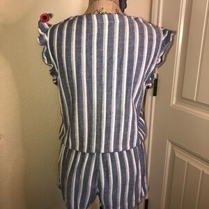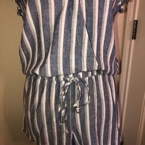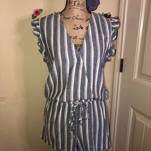 Anthropologie Cloth & Stone Blue & White Zumba Beach Stripe Linen Romper Size S