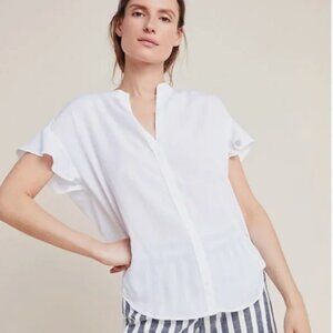Anthropologie Cloth & Stone Calder White Ruffle Sleeve Buttondown Shirt sz Large