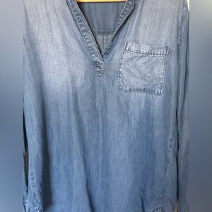 Anthropologie Cloth & Stone Chambray Denim High Low Collared Top Women’s size L
