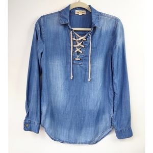 Anthropologie Cloth & Stone Chambray Lace Up Top Size XS