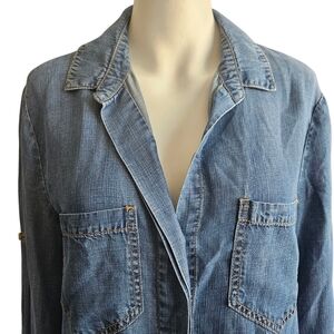 Anthropologie Cloth & Stone Chambray Split Shirttail Blue Button Up Size Medium