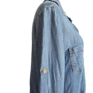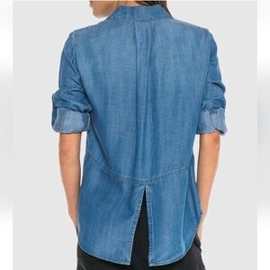 Anthropologie Cloth & Stone Chambray Split Shirttail Blue Button Down Size Medium