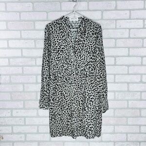 Stylish cheetah print dress. Long roll tab sleeves. V-neckline with button front Perfect for any occasion.