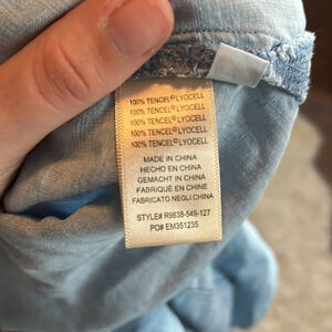 Excellent used condition Anthropologie Cloth & Stone Classic Chambray Shirt with Frayed Trim and white buttons in size XS
