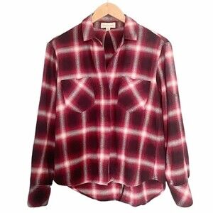 Anthropologie Cloth & Stone Cranberry Plaid Flannel Button Front Blouse Size XS