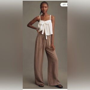 Anthropologie Cloth & Stone Drawstring Pull-On Brown Pants Wide Leg , Large