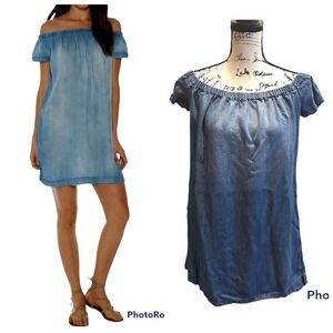 Anthropologie Cloth & Stone Dress Chambray Denim Off Shoulder blue size XS