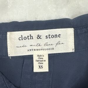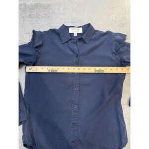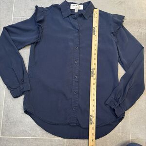 Anthropologie Cloth & Stone Frayed Ruffle Button Down Shirt - Navy - Women's XS