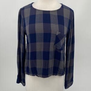 Anthro Cloth + Stone Top Lace Up Back Long Sleeve Scoopneck Buffalo Plaid