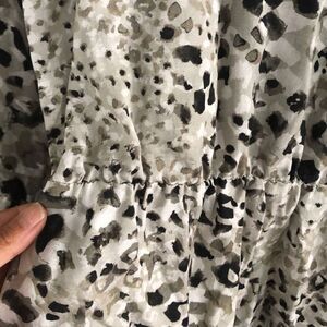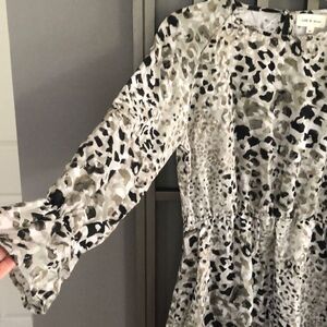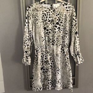 Anthropologie Cloth & Stone Gray Black, white abstract, print, long sleeve, mini dress dalmatian print size M