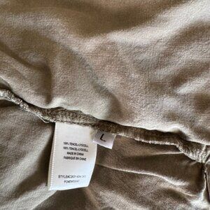 Anthropologie Cloth & Stone button down moss green shirt. Insanely soft and drapey in a classic fatigue green. Boxy cropped shape, Very cute and casual. Fold up Sleeves. High Low hem with a split back.