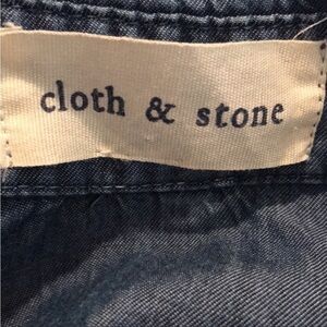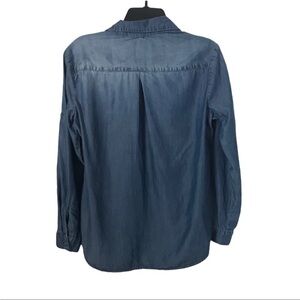 Anthropologie Cloth & Stone Hi/Lo Chambray Roll Tab Sleeve V-Neck Tunic Size S