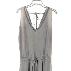 Anthropologie Cloth & Stone Juliana Jumpsuit Gray Ombre Cropped V Neck Bohemian Beach Preppy Casual Tencel Chambray Sleeveless Drawstring Waist