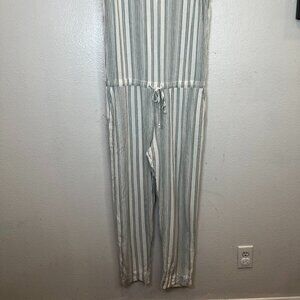 Name Brand: Anthropologie Cloth & Stone Jumpsuit Gray Striped Linen Blend Size L
