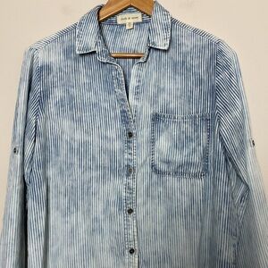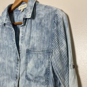 Anthropologie Cloth & Stone L Piper Denim Chambray Striped Button Down Size S