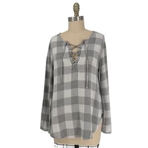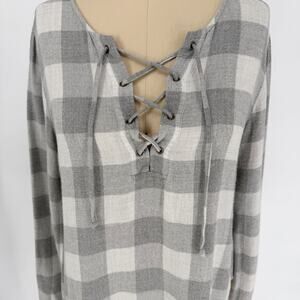 Anthropologie Cloth & Stone Lace-Up Buffalo Plaid Flannel Top Womens Medium