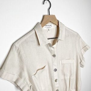 Anthropologie Cloth & Stone Linen Romper Button Down Short Sleeve in Beige.Size Small. Preowned condition. Refer to photos for any signs of wear.