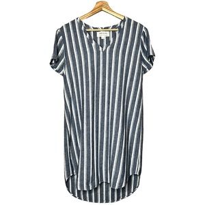 Anthropologie Cloth & Stone Linen Vertical Striped V-Neck Mini Beach Dress