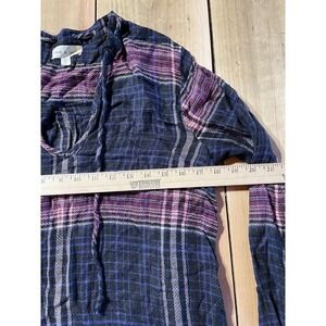 Anthropologie Cloth & Stone Plaid Boho Long Sleeve V Neck Mini Dress Size S