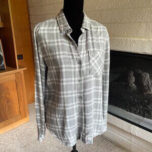 Anthropologie Cloth & Stone Plaid Flannel Metallic Thread Button Down