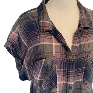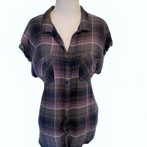 Anthropologie Cloth & Stone Purple Plaid Button Down Top