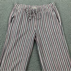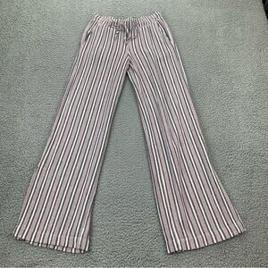 Anthropologie Cloth & Stone Rayon Linen Striped Wide Leg Side Slit Pants Size XS