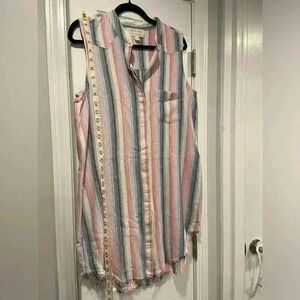 Anthropologie Cloth & Stone Ripped Hem Sleeveless Striped Shirt Dress Size M