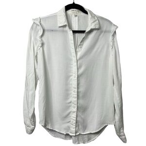 Anthropologie Cloth & Stone Ruffle Trim White Button Down Shirt Size S