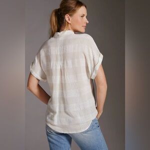 Anthropologie Cloth & Stone Surf Buttondown Linen Blend Short Sleeve Blouse Top