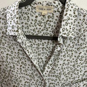 Anthropologie Cloth & Stone Sz XS Button Shirt Top Blouse White Roll Tab Sleeve.