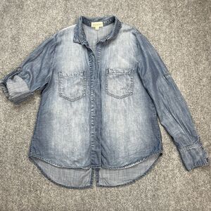 Anthropologie Cloth & Stone Top Size Medium Split Back Chambray Roll Tab Sleeve