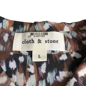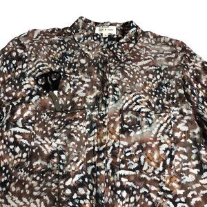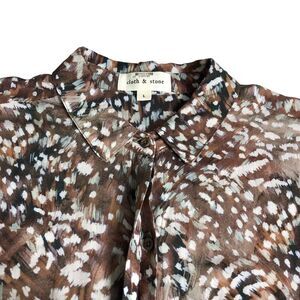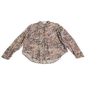 Anthropologie Cloth & Stone Top Womens L Brown Paint Splatter Animal Button Boho