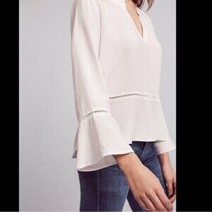 Anthropologie Cloth & Stone White Bell Sleeve Peplum Split Hem Top XS