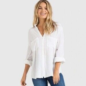 Anthropologie Cloth & Stone White Button Down Long Sleeves Blouse Size M