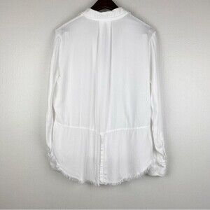 Anthropologie Cloth & Stone White Button Down Frayed Hem Blouse Size M
